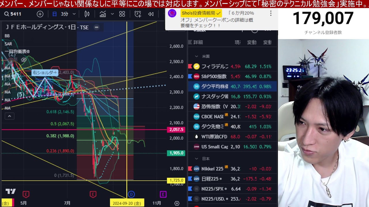 9/9、日本株暴落終わりか。日経平均乱高下で175円安。ドル円上昇で後場強い。高配当銘柄しっかりで半導体株、自動車株の下落キツイ。米国株、ナスダックどうなる。仮想通貨BTC上昇 投稿日時: 9月 9, 2024 投稿者: filmtn7753KASOU