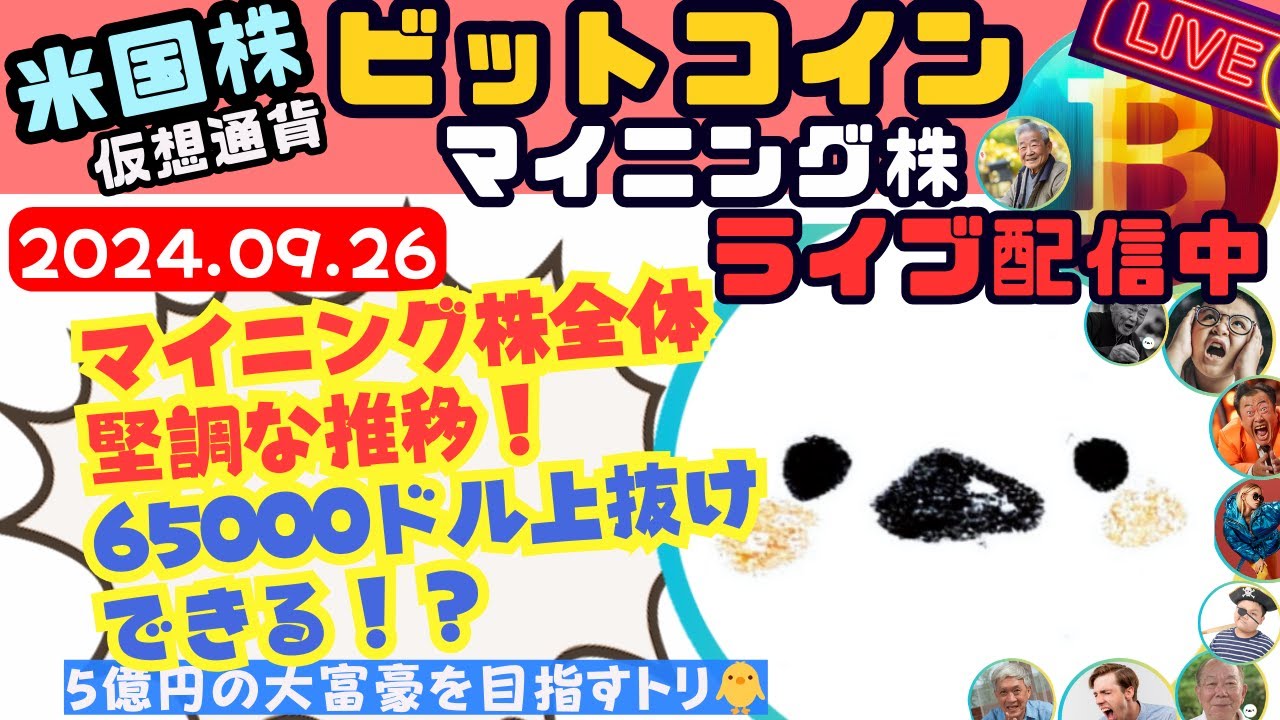 2024/09/26(木)米国株/マイニング株Live🎤ビットコイン65000ドル突破できるか!?仮想通貨関連株ついに爆上げが始まる!?って話🐥【COIN、MSTR、MARA】【ムクエナガ】 投稿日時: 9月 29, 2024 投稿者: filmtn7753KASOU