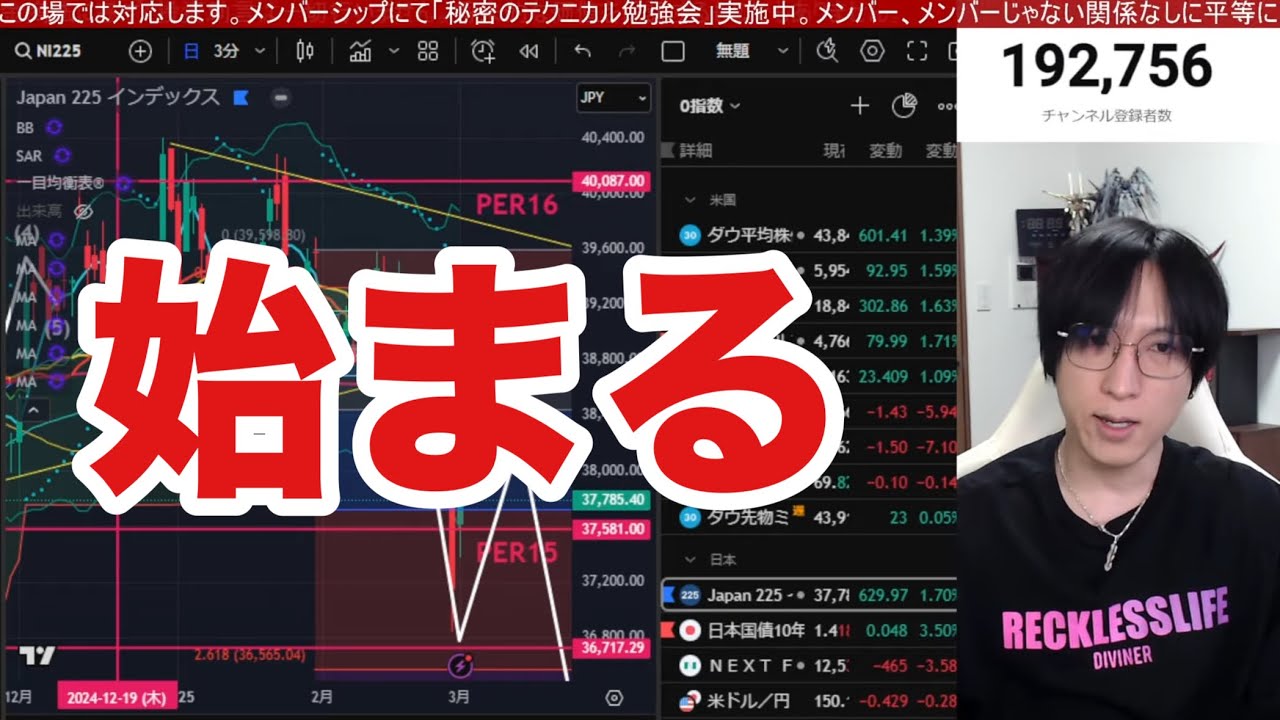3/5【日本株また騙し上げか?日経平均先物暴落から一転上昇】トランプ関税緩和発言で半導体、自動車株に買戻し。ドル円149円推移。米国株、ナスダック、仮想通貨BTCの急落止まるか。 投稿日時: 3月 5, 2025 投稿者: filmtn7753KASOU