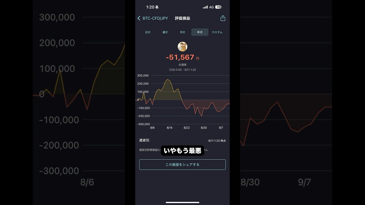 今日は2,000円だけ利益確定。寝てる間にビットコイン爆上がりしてました。利益確定していなかったら+7万円くらいにはなってました😢大失敗、、、