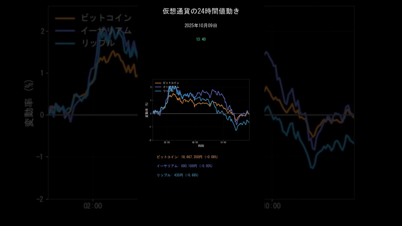 ⏱ タイムスタンプ 0:00 オープニング 0:15 中盤の値動き 0:30 24時間統計情報 📈 2025年10月09日(木) の統計 ━━━━━━━━━━━━━━━━━━━━━ 【ビットコイン】 現在価格: ¥18,607,206 24時間変動: -0.38% 最高値: ¥18,963,190 (+1.52%) 最安値: ¥18,561,135 (-0.63%) ━━━━━━━━━━━━━━━━━━━━━ 【イーサリアム】 現在価格: ¥666,254 24時間変動: -2.05% 最高値: ¥694,460 (+2.10%) 最安値: ¥662,116 (-2.66%) ━━━━━━━━━━━━━━━━━━━━━ 【リップル】 現在価格: ¥431 24時間変動: -1.45% 最高値: ¥447 (+2.05%) 最安値: ¥427 (-2.42%) 🔔 チャンネル登録で毎日0時に最新相場配信! 💬 コメントで感想をお聞かせください #ビットコイン #仮想通貨 #10月9日 返信 ↓