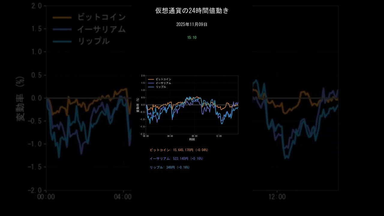 ⏱ タイムスタンプ 0:00 オープニング 0:15 中盤の値動き 0:30 24時間統計情報 📈 2025年11月09日(日) の統計 ━━━━━━━━━━━━━━━━━━━━━ 【ビットコイン】 現在価格: ¥15,819,401 24時間変動: +1.07% 最高値: ¥15,957,256 (+1.95%) 最安値: ¥15,592,434 (-0.38%) ━━━━━━━━━━━━━━━━━━━━━ 【イーサリアム】 現在価格: ¥538,799 24時間変動: +3.16% 最高値: ¥545,940 (+4.53%) 最安値: ¥515,944 (-1.22%) ━━━━━━━━━━━━━━━━━━━━━ 【リップル】 現在価格: ¥352 24時間変動: +0.65% 最高値: ¥356 (+1.80%) 最安値: ¥345 (-1.31%) 🔔 チャンネル登録で毎日0時に最新相場配信! 💬 コメントで感想をお聞かせください #ビットコイン #仮想通貨 #11月9日 返信 ↓