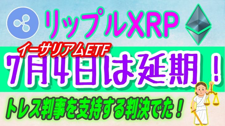 【 リップル(XRP)】イーサリアムETF承認、7月4日は延期!【仮想通貨】SEC対バイナンス訴訟で、トレス判事を支持する判決⁉